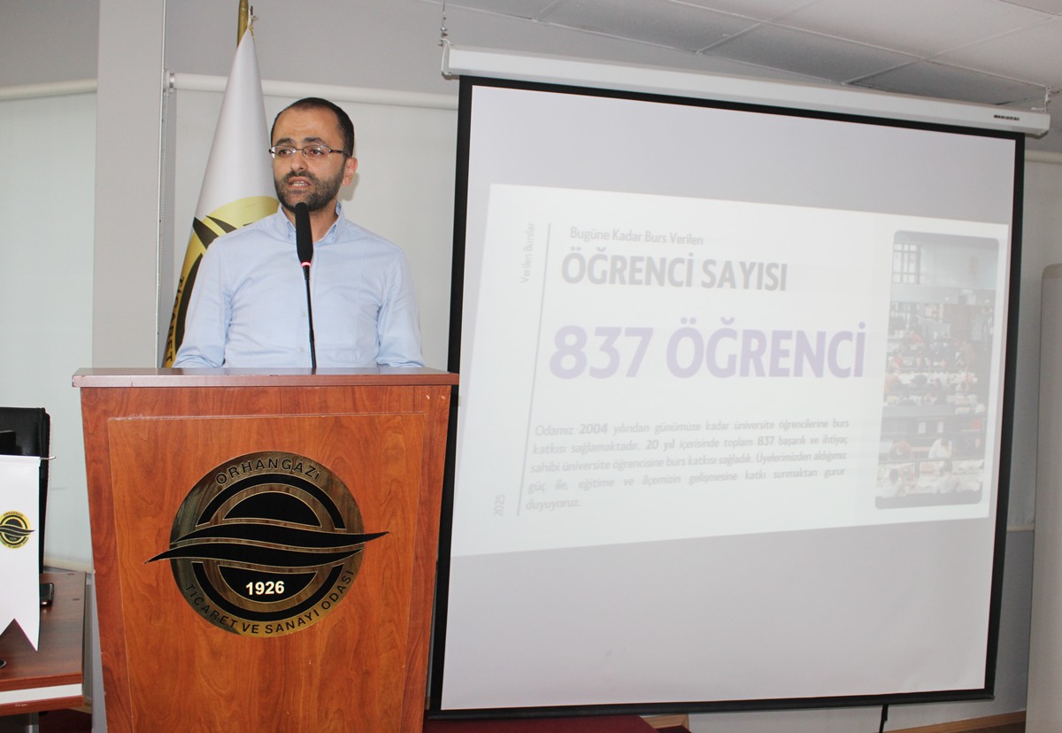 Yönetim Kurulu Başkan Yardımcımız Enes Gören sunumunda, oda tarafından başarılı ve ihtiyaç sahibi öğrencilere verilen öğrenci bursları hakkında bilgilendirmelerde bulundu. 2004 yılından bugüne kadar 837 öğrenciye burs verilirken, 2025-2026 Eğitim-Öğretim dönemiyle bu rakamın 900’ün üstüne çıkması bekleniyor.